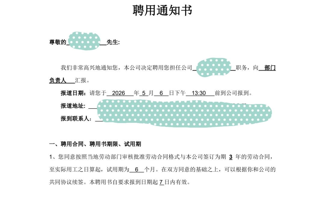 挺正规啊,还有聘用通知书;话说试用期都这么长吗?